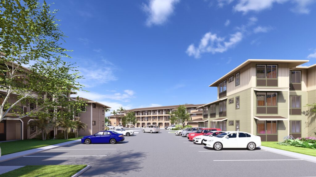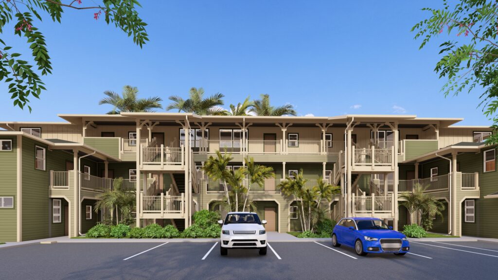 Kaleim‘ao Village is a 127-unit affordable housing development along Fort Weaver Road in Ewa Beach, Hawaii. The 3.7-acre lot is owned by the City and County of Honolulu and the project is part of their affordable housing program. It includes 7-two and three-story residential buildings with a total of 28 one-bedroom, 87 two-bedroom and 12 three-bedroom units. A Community Center building houses a meeting space, central laundry facility, administrative office, and mailboxes. Provisions for parking include 137 vehicle stalls and 64 bicycles stalls.